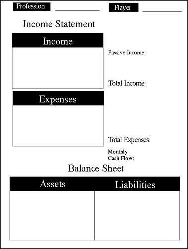 3 Distribute a Game Card Income StatementBalance Sheet to each Player. Players have all the same job for example all Doctors Play as a couple double the number of players A person who does not call out his paycheck and then the next person rolls loses it. Buy stock cheap to sell higher later or build up rent property to perhaps sell later as well.